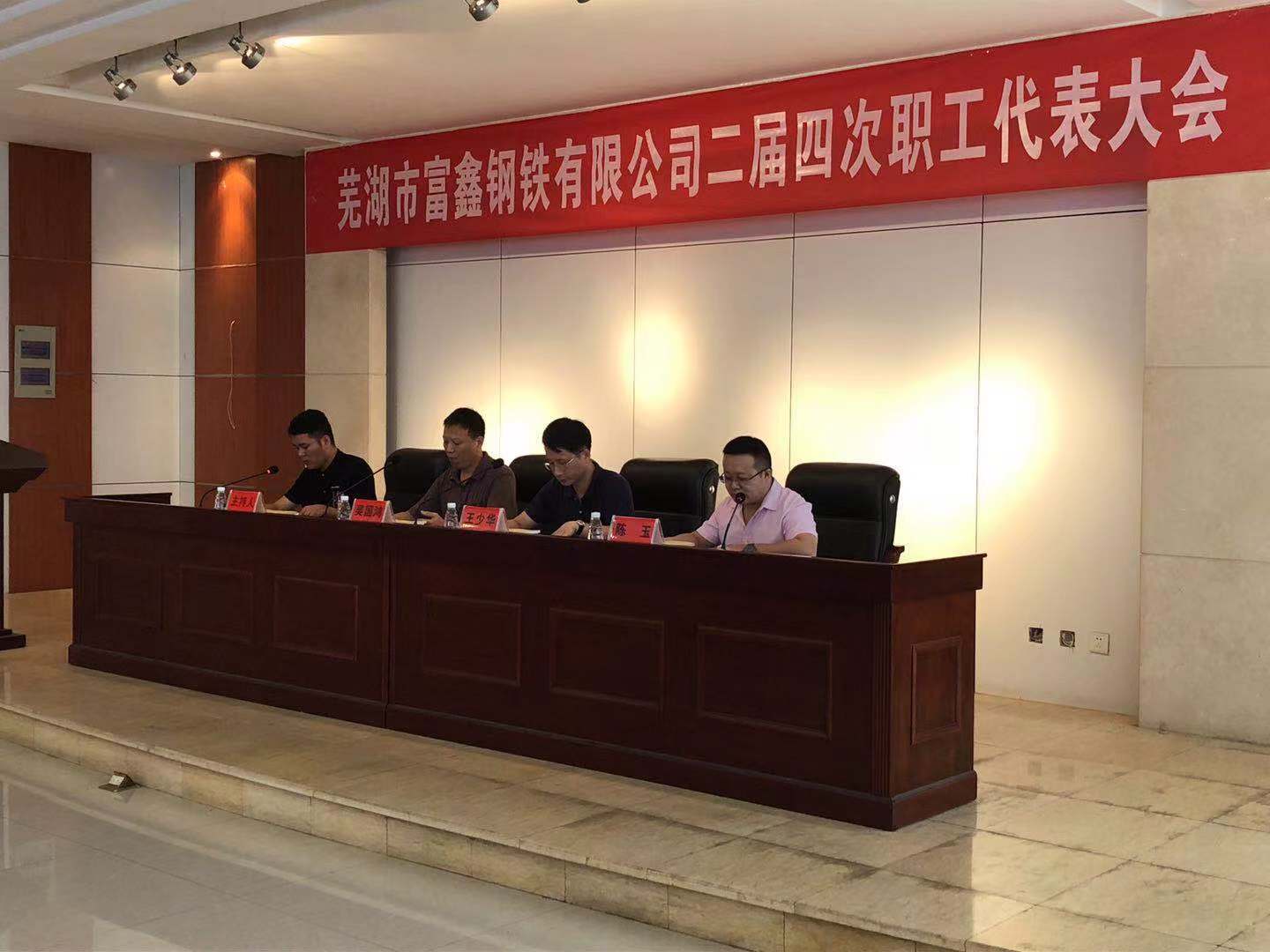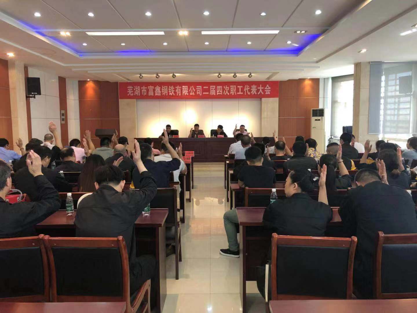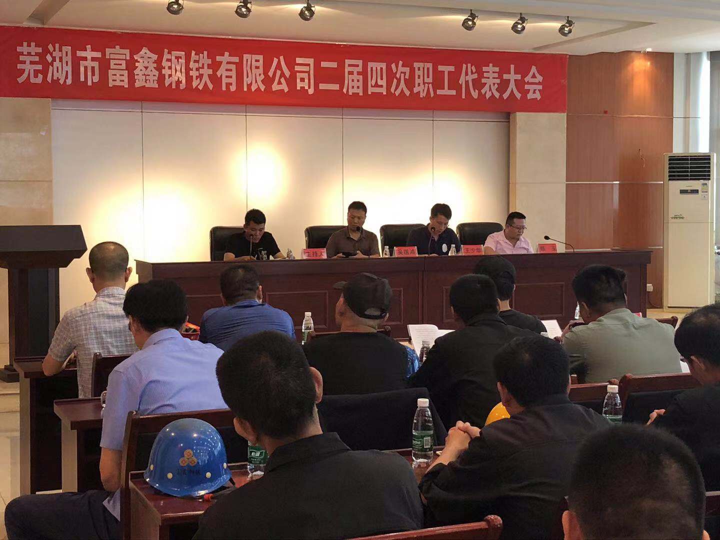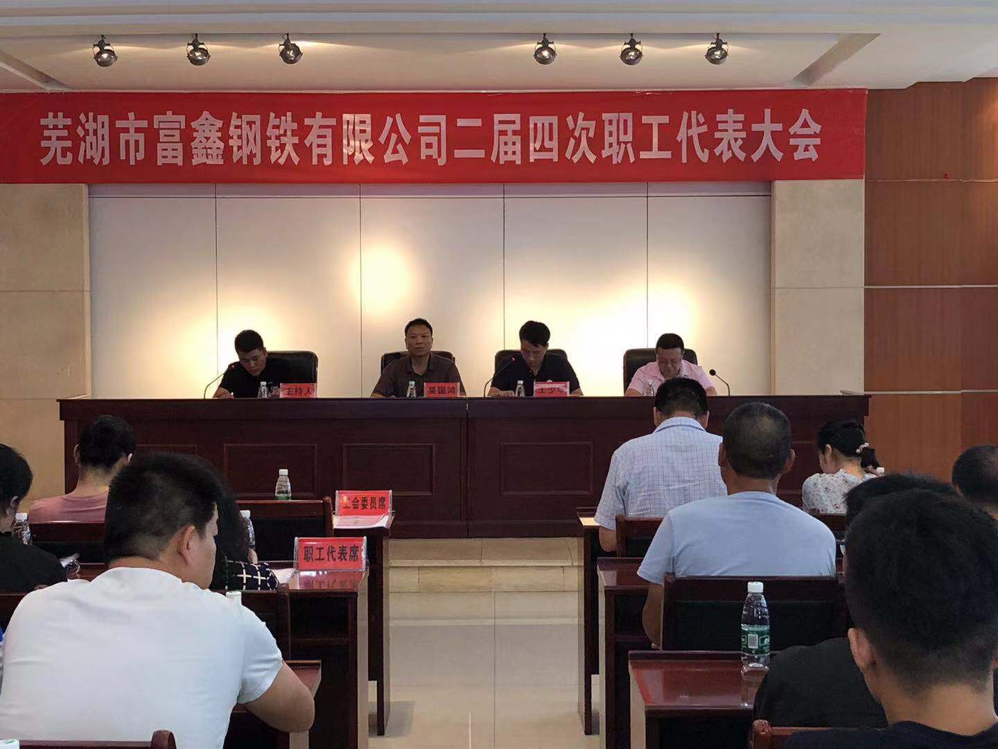 2019年8月6日上午9時蕪湖市富鑫鋼鐵有限公司第二屆第四次職工代表大會在雄壯的國歌聲中隆重開幕!受公司黨委書記王文奇同志委托,陳玉同志代表公司黨委對大會致辭!會上全體工會委員、職工代表精神飽滿,積極審議。并認真舉手表決,全票審議通過了公司2019版《員工手冊修訂草案》和工會主席王少華同志作的題為《有效提升工會服務(wù)意識 共譜和諧發(fā)展新篇章》工會工作報告。最后由公司領(lǐng)導(dǎo)吳國鴻同志致大會閉幕辭!此次大會回顧了2018年公司各部門全年的工作,并且號召全體員工在公司黨委的堅強領(lǐng)導(dǎo)下,統(tǒng)一思想,堅定信心,攻堅克難,開拓創(chuàng)新,全力以赴,為全面實現(xiàn)2019年公司生產(chǎn)發(fā)展目標而努力奮斗!